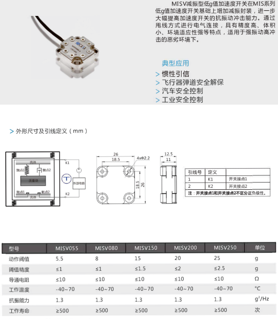 MISV减震型低G值加速度开关