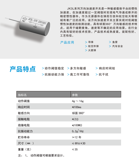 JK3L系列万向加速度开关